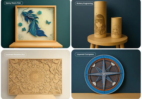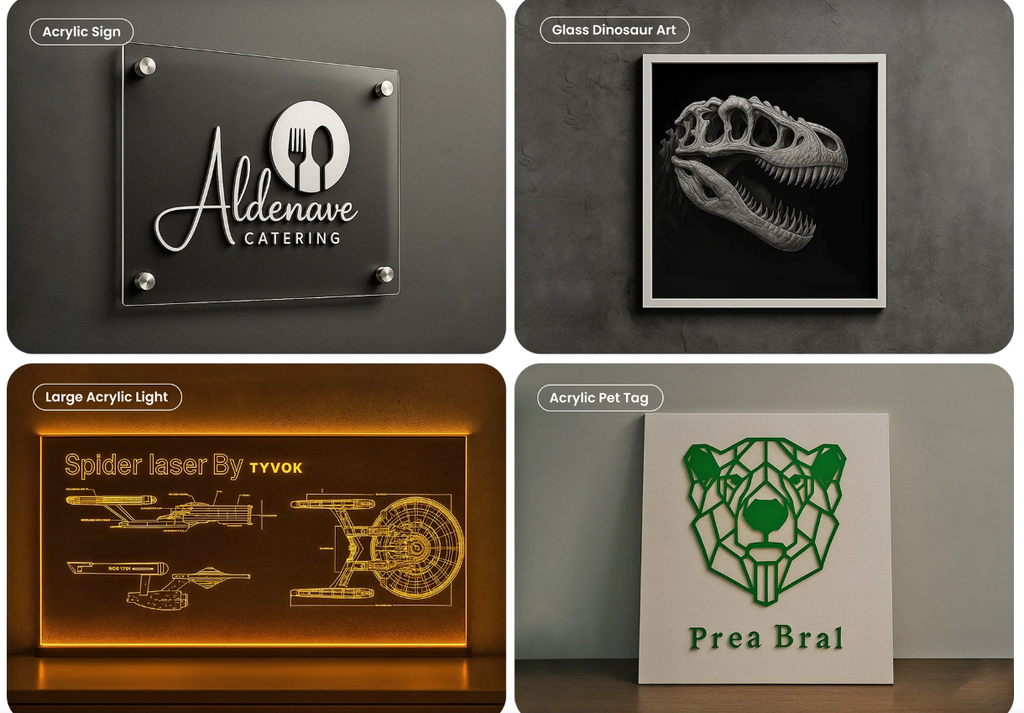 - Material Versatility — Works beautifully with glass, acrylic, wood, leather, fabric, and more.
